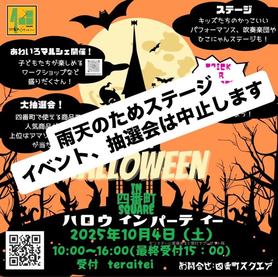 ハロウィンパーティin四番町スクエア雨天中止のお知らせ終了しました